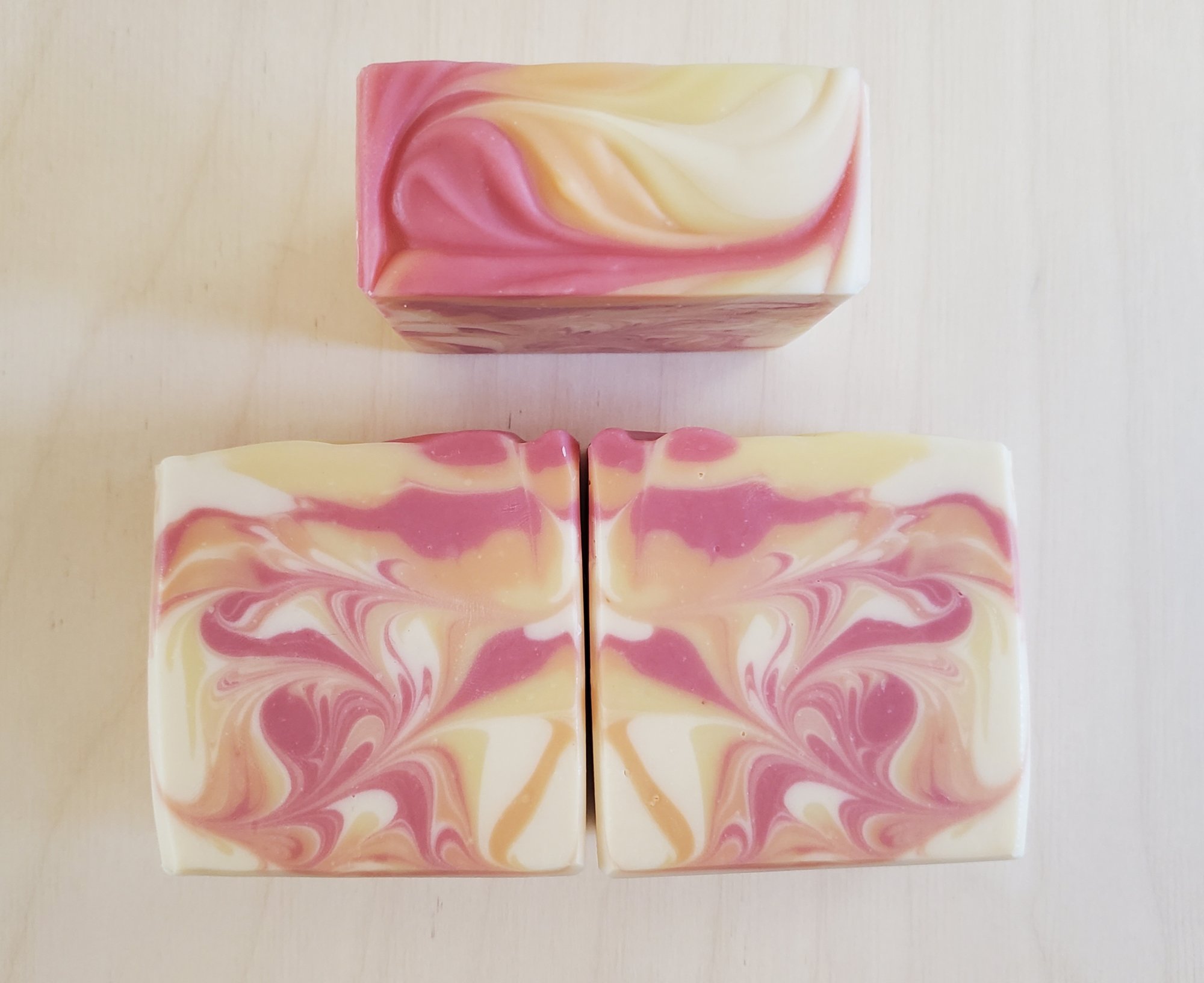 Every bar is handcrafted, cut and trimmed. Due to being handcrafted designs, colors and weights may vary. Cured for at least 4 weeks to ensure a hard long lasting bar of soap. Allow to dry after each use in a draining soap tray.
